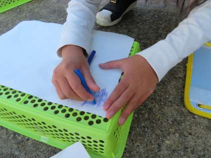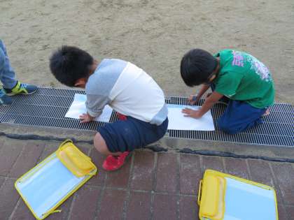 図工の学習では,身近にあるでこぼこを見つけて紙に写しとりました。運動場に出て,地面や壁にあるでこぼこをたくさん発見できました。