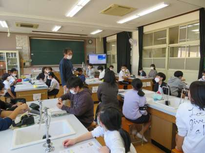 北野中学校の先生が理科の授業をしてくださいました。光についての学習でした。