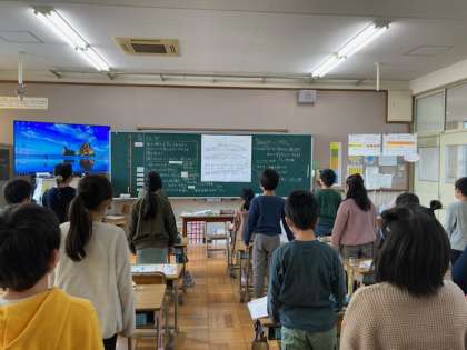 ポイントを確認して最後にみんなで歌ってみます。曲の盛り上がりを意識したり,呼び合う「とんび」をイメージしたりして歌えました。しっかりと考えながら歌えていることが良く分かりました。