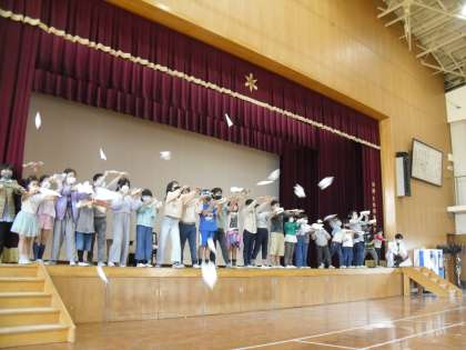 作った後、飛ばし方など試行錯誤しながら楽しく取り組んでいました。ちなみに、ギネスヒコーキの世界記録は69mだそうです。すごい!!