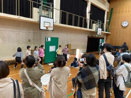 緊張感に負けず、元気よく発表する子ども達の姿が見られました。写真は前半D・E・Fブースの様子です。