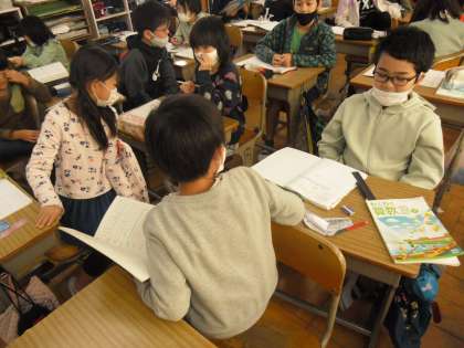 分数の意味を定着できるように、「〇分の△」というのは「〜を〇等分した△こ分」であるということを、友だちに何度も説明しました。