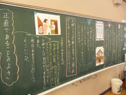 道徳科で「まどガラスと魚」という教材を使って「正直にすることのよさ」について考えました。