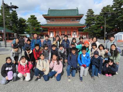 平安神宮に行きました。平安神宮は中に入らず、外から建物を眺めました。