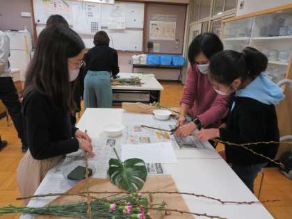12月5日(月)のクラ部活では、華道体験を行いました。地域の先生方に教えていただきながらお花を生けました。花のバランスを考えながら楽しんで取り組むことができました。