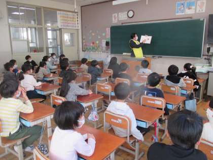 図書ボランティアさんに来ていただき,なかよし学級・1年生・2年生の各クラスに読聞かせに来ていただきました。