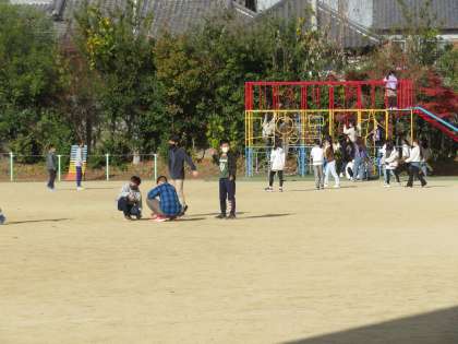 残念そうにしていましたが、学年で15分ほど休憩時間として運動場で過ごしていました。