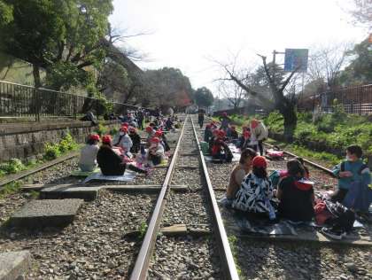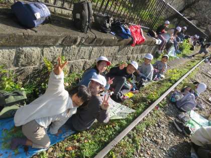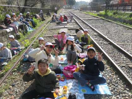 インクラインを降りたところで、お弁当を食べました。お天気が良くて暖かく、「最高のお弁当日和」でした。