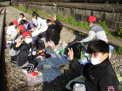 8日(木) 4年生 疏水見学 その12「お昼ごはん・お弁当」2組