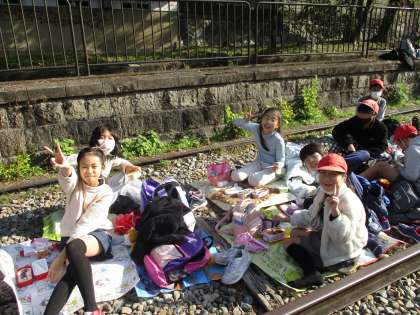 8日(木) 4年生 疏水見学 その13「お昼ごはん・お弁当」2組