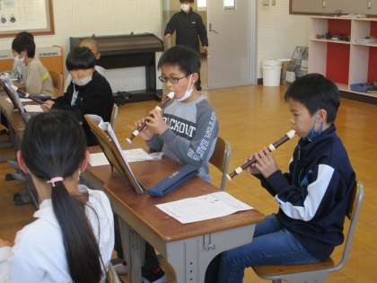 リコーダーのテストの様子から
