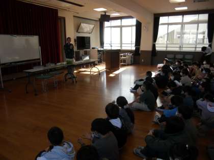 学校に戻ってから、地域の佐伯さんに、収穫した野菜について教えていただきました。