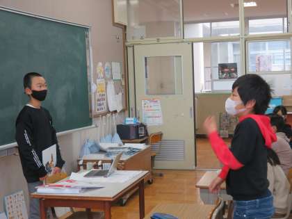 読み聞かせが終わった後は、思いを伝え合いました。読み聞かせの仕方や物語の内容に関しての感想が出ました。「風や物音の読み方が上手でした。」「お互いに思ったことを言い合えて最後に『友達』になれたのが良かったと思いました。」