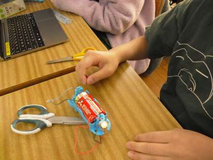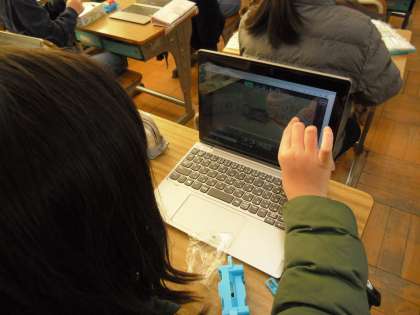 学習で使うキットは、導線の巻き方・つなぎ方などの細かい部分をGIGA端末で確認しながら進めています。
