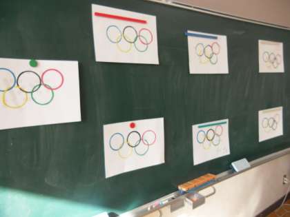 今回は「オリンピックマーク」を画用紙で作りました。