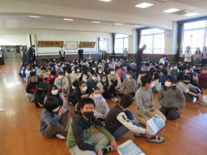 6年生はゆめホールに集まって全学年との交流を行いました。