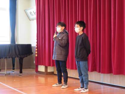 堂々と全校の前で話す姿に感心しました。