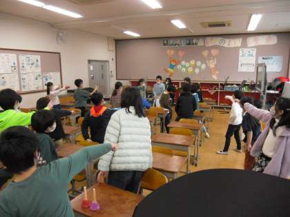 「おかしのすきなまほう使い」という曲の中で、魔法使いが使う「魔法」を自分たちで楽器を使って演奏しました。「どの楽器の音もしっかりと聞こえるようにしました。」「だんだんと音を増やしていくようにしました。」「高い音の出る楽器を集めました。」など、それぞれのグループが工夫を凝らした発表をすることができました。