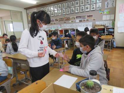 今日は「かざり係」が休み時間を利用して、「折り紙教室」を開催してくれました。みんなでクラスの飾りを作るのはいいですね。