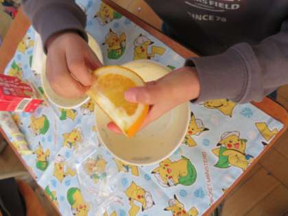 2月22日(水)の給食にはっさくが出ました。皮のむき方をビデオで見たあと、一生懸命むいて食べていました。初めてはっさくを食べる子も多く、そのさわやかな味と香りを楽しんでいました。