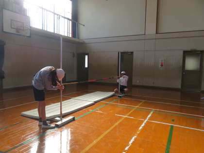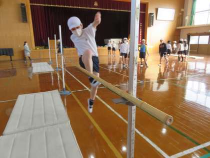 各ブースで出会った人同士で役割分担をして、高跳びに挑戦している様子です。少しずつ慣れてきて、100cmに挑戦する児童もいました。