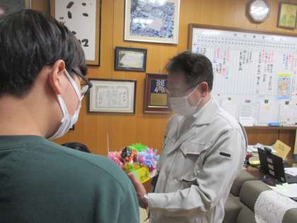 小さな巨匠展で展示した立体の合同運動会に参加する自分や校長先生、とても思い入れがあります。校長先生に、万歳しながら子どもたちを応援する校長先生の立体作品をプレゼントしに行きました。とても喜んでもらえました。本当は、家に持って帰りたい子がいたんです。