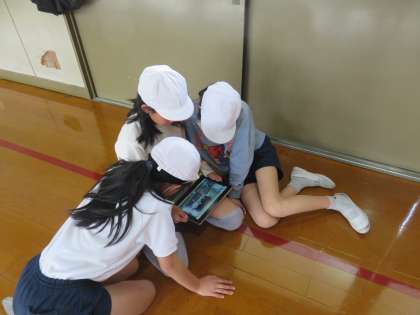 GIGA端末を使って自分や友達の跳び方を撮影し、分析する児童もいました。