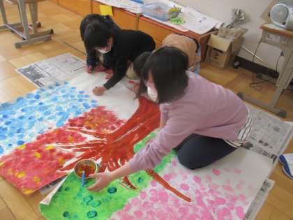 1年間の思いを込めて、体育館に掲示する絵をみんなで描きました。