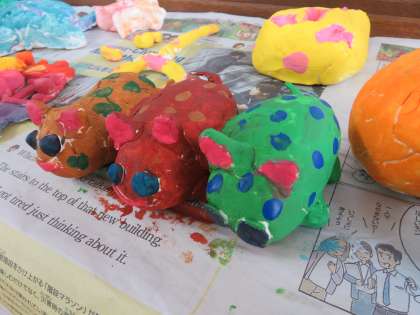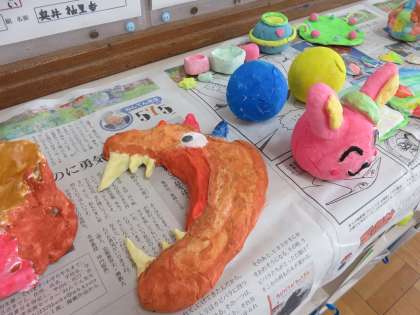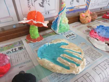 子ども達らしい、バラエティー豊かな作品が出来上がりました。どの作品も眺めていると、元気が出ますね。