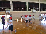 体ほぐしの運動で、大繩やフラフープを使った運動をしました。