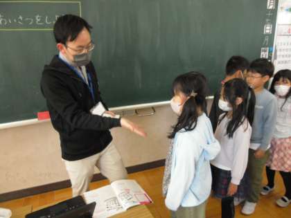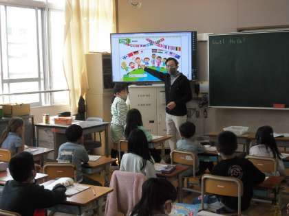 1回目の授業では、様々な国のあいさつでみんなと交流しました。