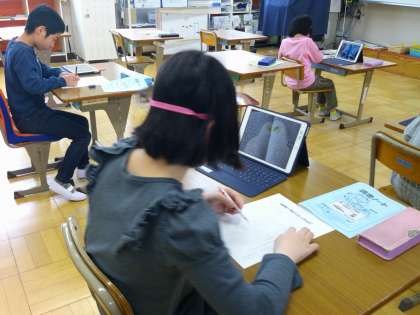 ”みたら みられた”の読み聞かせを聞いて、自分の好きな場面を発表したり、絵に描いたりしました。確かに、見ると、相手も見ていることってありますよね。おすすめの本の一つです。