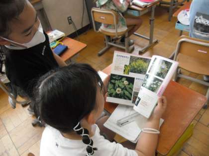 理科で「しぜんのかんさつ」の学習をしています。