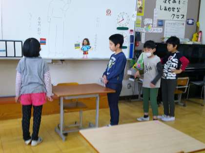 今年度も、もう一人の自分を作ります。等身大のもう一人の自分を作りたい人、〇分の1サイズのもう一人の自分を作りたい人、それぞれが、なぜそれを作りたいのか、違う意見の友達に説明をし合いました。「等身大だと、目があって自分と話しているみたいだから。」「ミニサイズだとおらずに持ち帰られるから。」等具体的な理由を話すことができ、素敵だなと思いました。