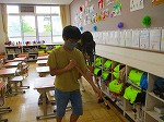 1年生の教室に掃除のお手伝いにいっています。