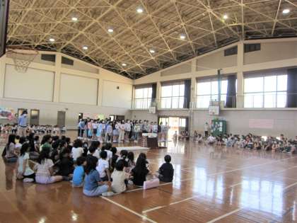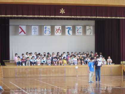 1年生に向けて、各学年から、歌や演奏・クイズ・言葉のプレゼントをしました。どの学年も一生懸命に発表をし、1年生の笑顔がたくさん見られました。