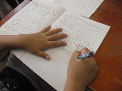 十の位や百の位に繰り上がる計算をがんばって練習しています。