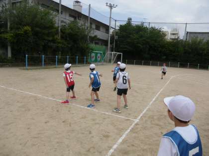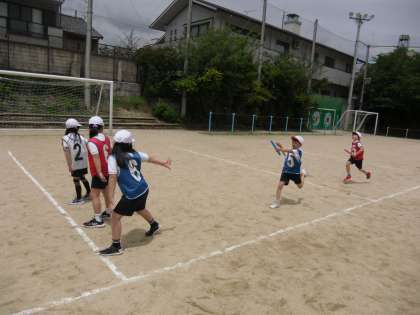 上手にバトンをつなげるように、チームごとに工夫してバトンパスの練習をしていました。
