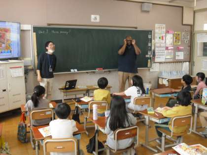 今日はALTのジョシュア先生と一緒に外国語の学習をしました。