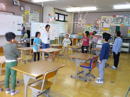友だちや先生のトレンドひらがなを当てます。1度で当たらなくて「くやしい。」と気持ちを出す友達もいます。「くやしい気持ち分かるよ。」「次考えたらいいよ。」と声をかけられる友達がいます。それがとてもすてきだなと感じられた時間でした。相手のことを考えないと答えが導き出せないので、じっくり考える子どもたちです。