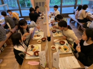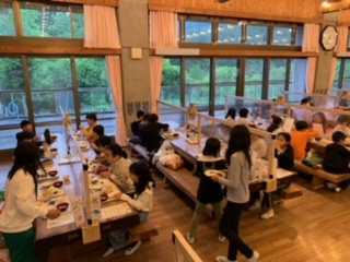 入浴のあと、お待ちかねの夕食です。みんな食欲旺盛で、「美味しすぎる!」と言いながらたくさんおかわりをしていました。
