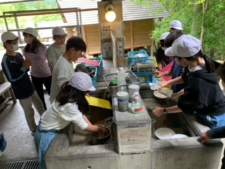 最後の大きな活動、野外炊事です。1人では決して出来ません。みんなで協力して美味しい鶏すき焼き風煮とご飯を作ります。
