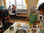まずはスクランブルエッグです。卵を混ぜて焼く準備をしている様子です。