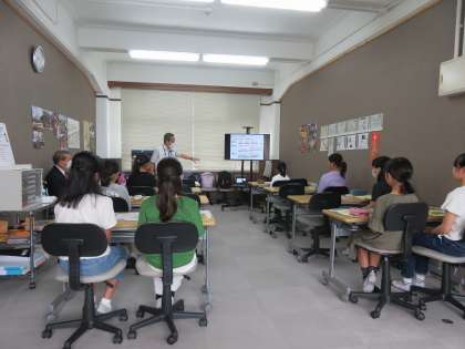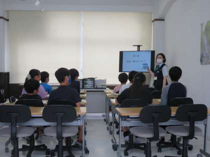 どの児童も、各ブースで研修担当の方からの話を真剣に聞いています。