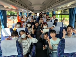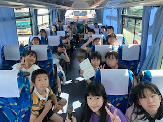 バスに乗り込み出発しました。わいわいと楽しそうに話して盛り上がっています。