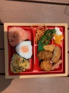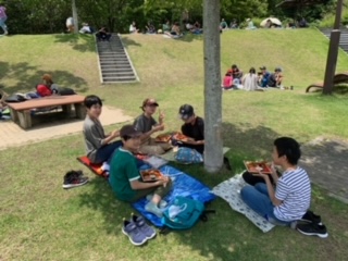 予定よりも30分以上早く小谷SAに到着しました。しんどくなる子もなく、みんな元気です。早速、お弁当をいただきました。