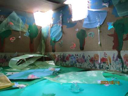 実際に日の光を取り入れて覗いてみました!児童それぞれの世界観や発想があり、とても面白いです!