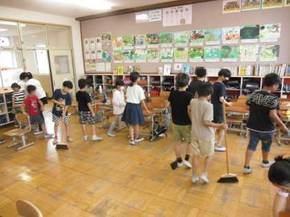 自分の担当の教室に行き、1〜6年生で力を合わせて掃除をしました。