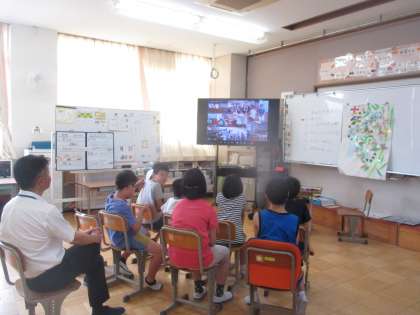 上京支部の育成学級と北総合支援学校のお友達が一緒にリモートで交流をしました。七夕が近かったので、七夕つながりのカラーハントゲーム(お題の色のものを教室内から探して持ってくるゲーム)やダンスでサチアレを踊りました。昨日カラーハントゲームの練習をしたので、子どもたちは、「昨日とは違う色のものを探そう。」としていました。サチアレのダンスは、秋に開かれる合同運動会の準備体操で踊る予定です。