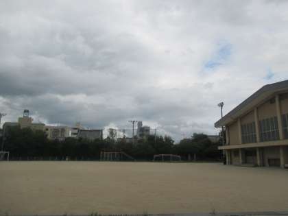 今日の空は曇が多いですね。曇りではありますが、突然の雨や暑さ対策は必要です。休憩やこまめな水分補給をしましょう。西側の駐輪場のサルスベリの紅色が咲き終わると、次は、東門を入った所を白いサルスベリが出迎えてくれています。